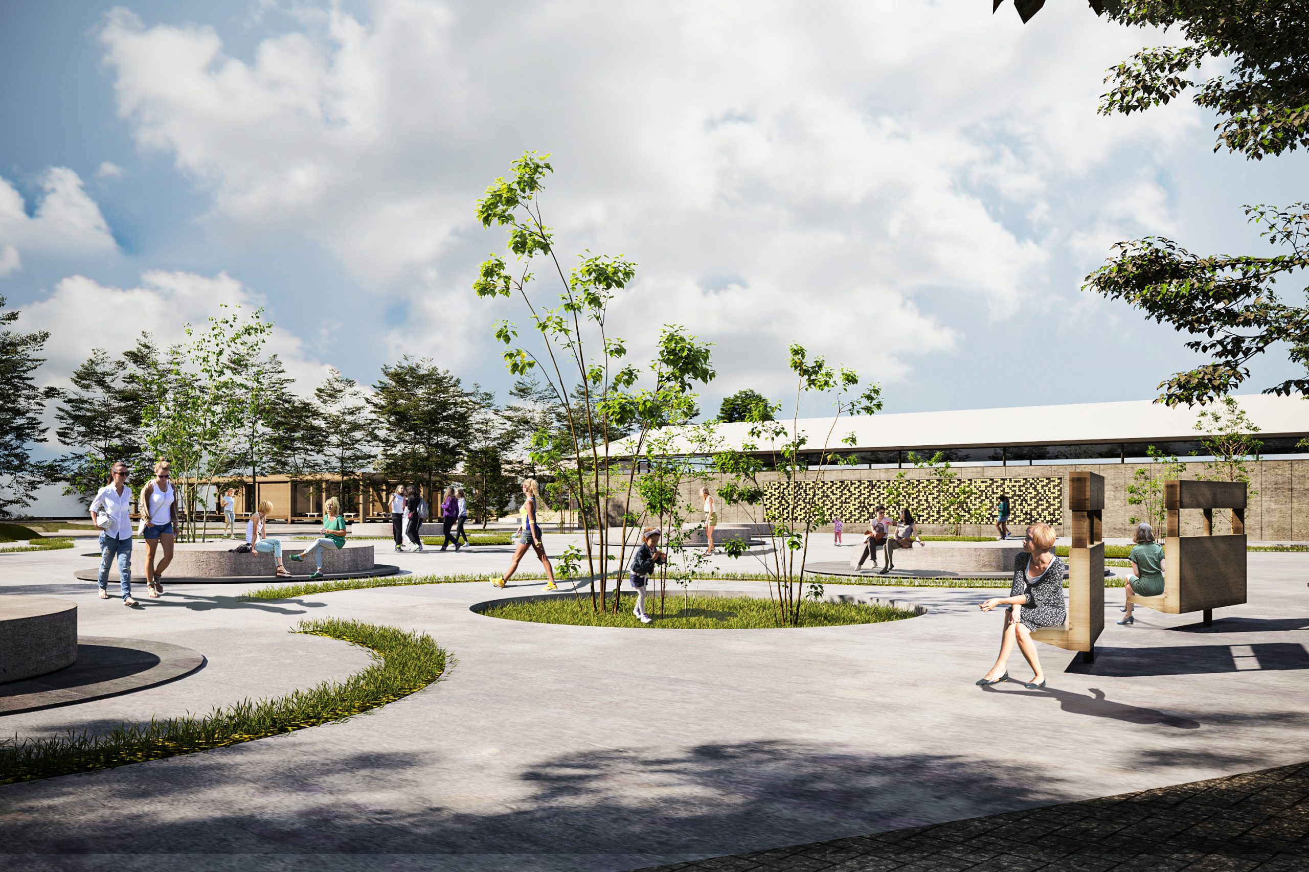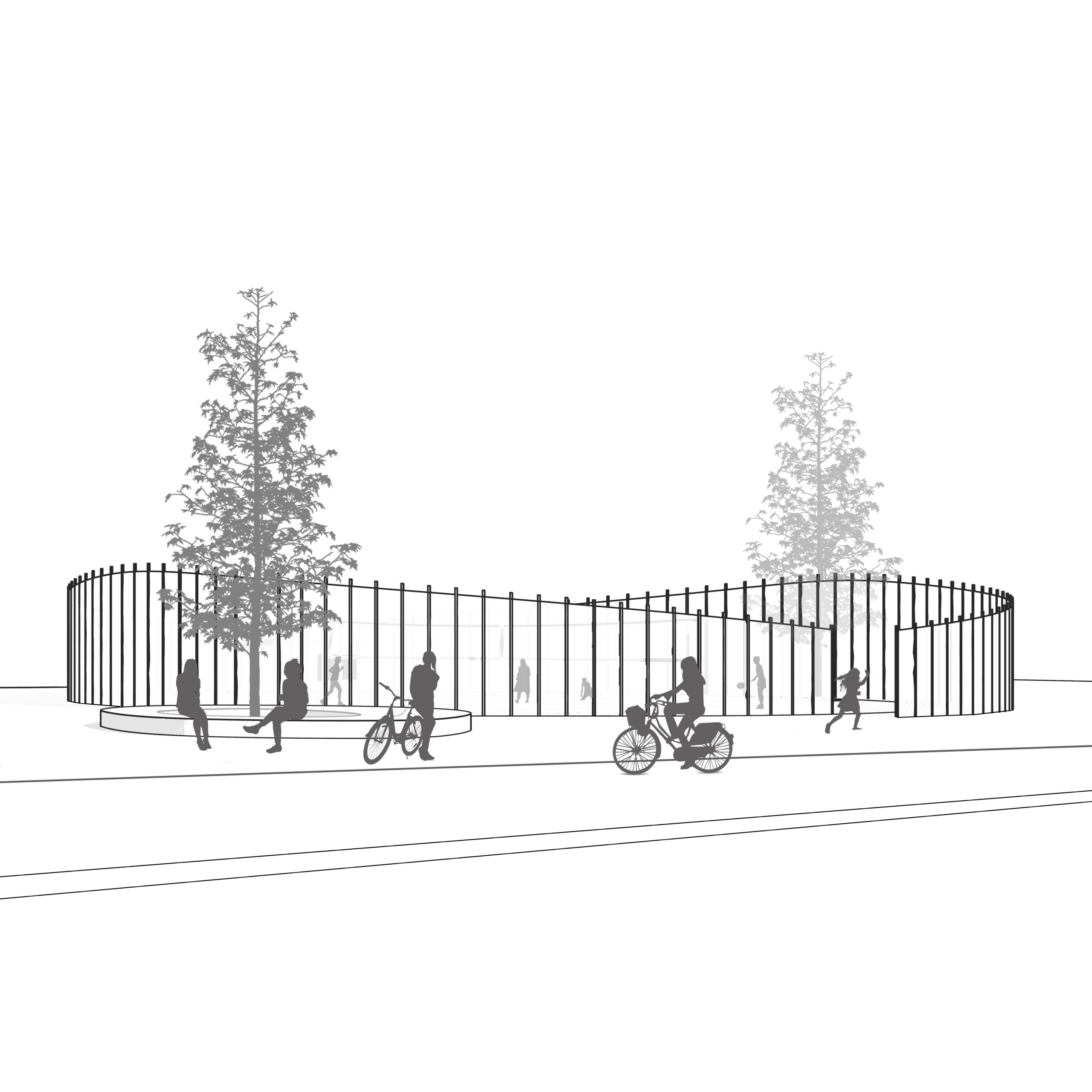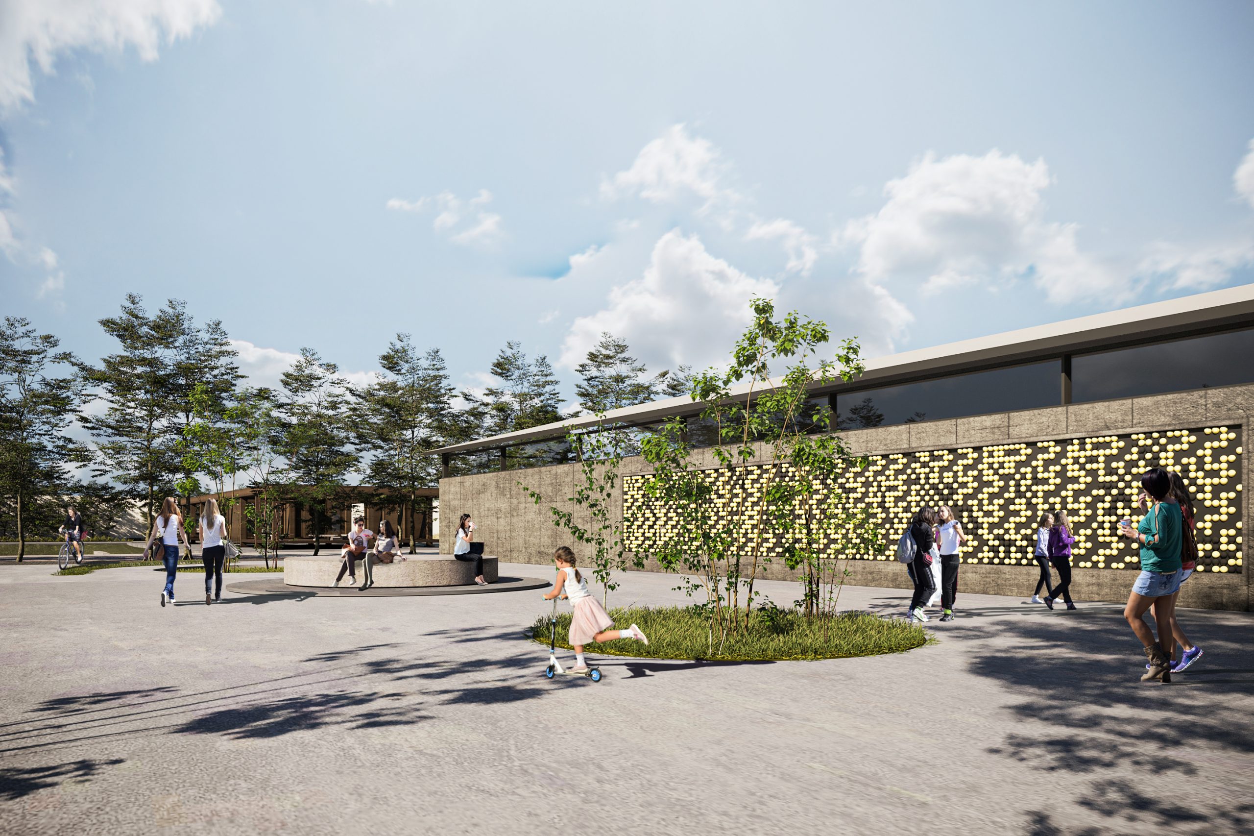 The Plaza has been designed to provide a space for social interactions, with furniture and interactive dynamic walls aimed at promoting the sense of participation among people in the environment. The goal is to increase social interactions and provide a favorable public space, especially for women.One of the approaches being considered for the design of this space is the redesign of the walls in the existing buildings. This can be achieved by improving the visual quality, creating rhythm using flooring and the shape of the walls, using diverse and joyful colors, and implementing innovative forms. Additionally, there is a focus on enhancing the performance of sports spaces and utilizing natural elements of the site.
