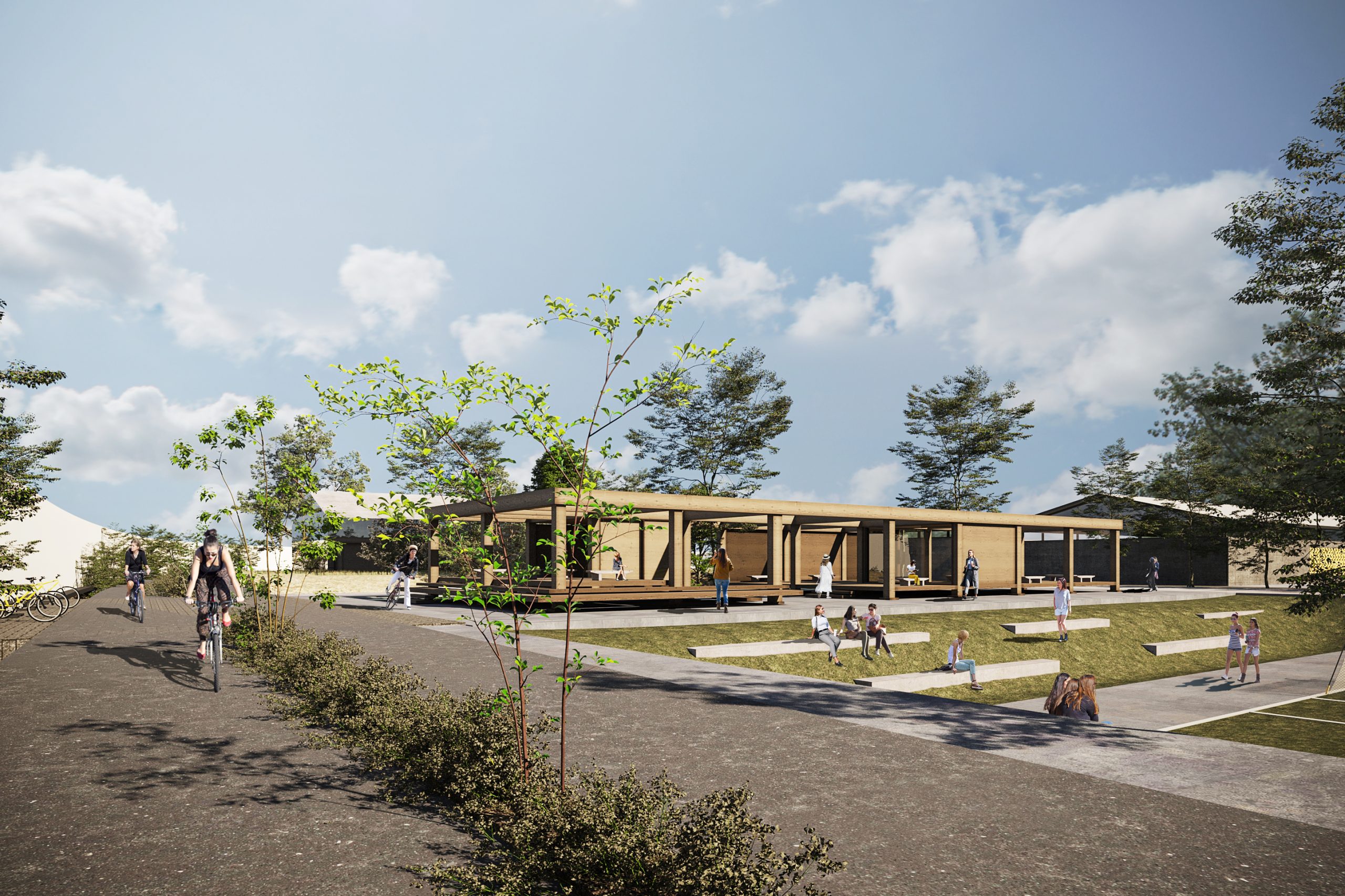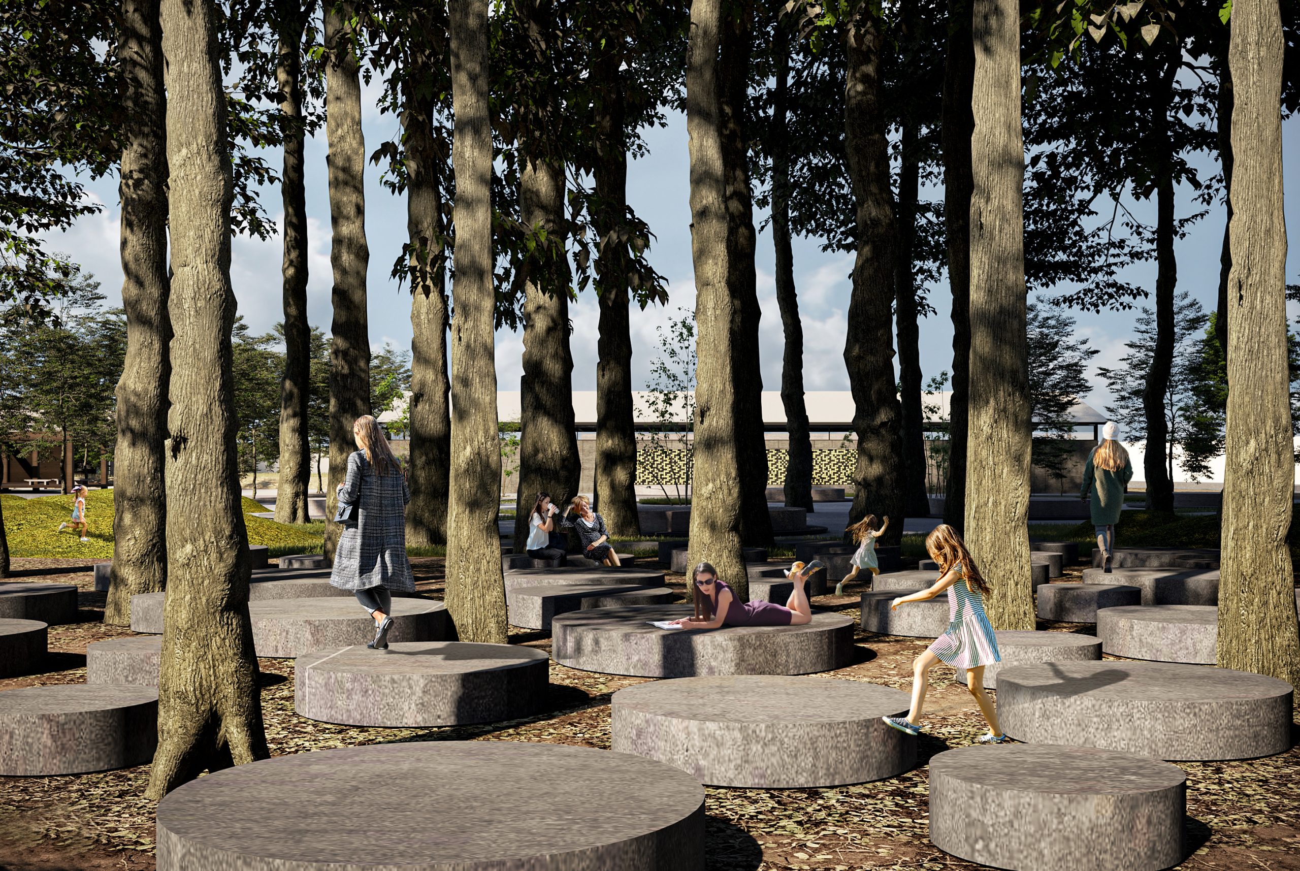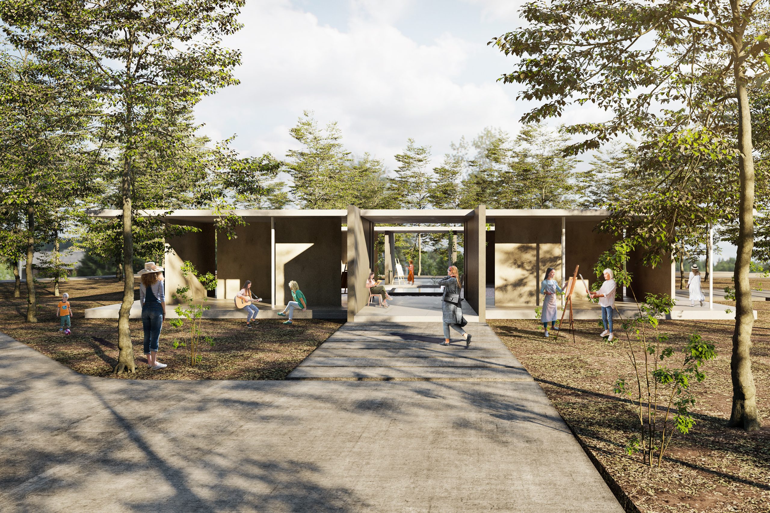 We have designed all the spaces in the garden to be transparent, flexible, and directly connected with the surrounding nature. Moreover, we have utilized all the trees on the site to achieve an ideal symbiosis between architecture and nature.