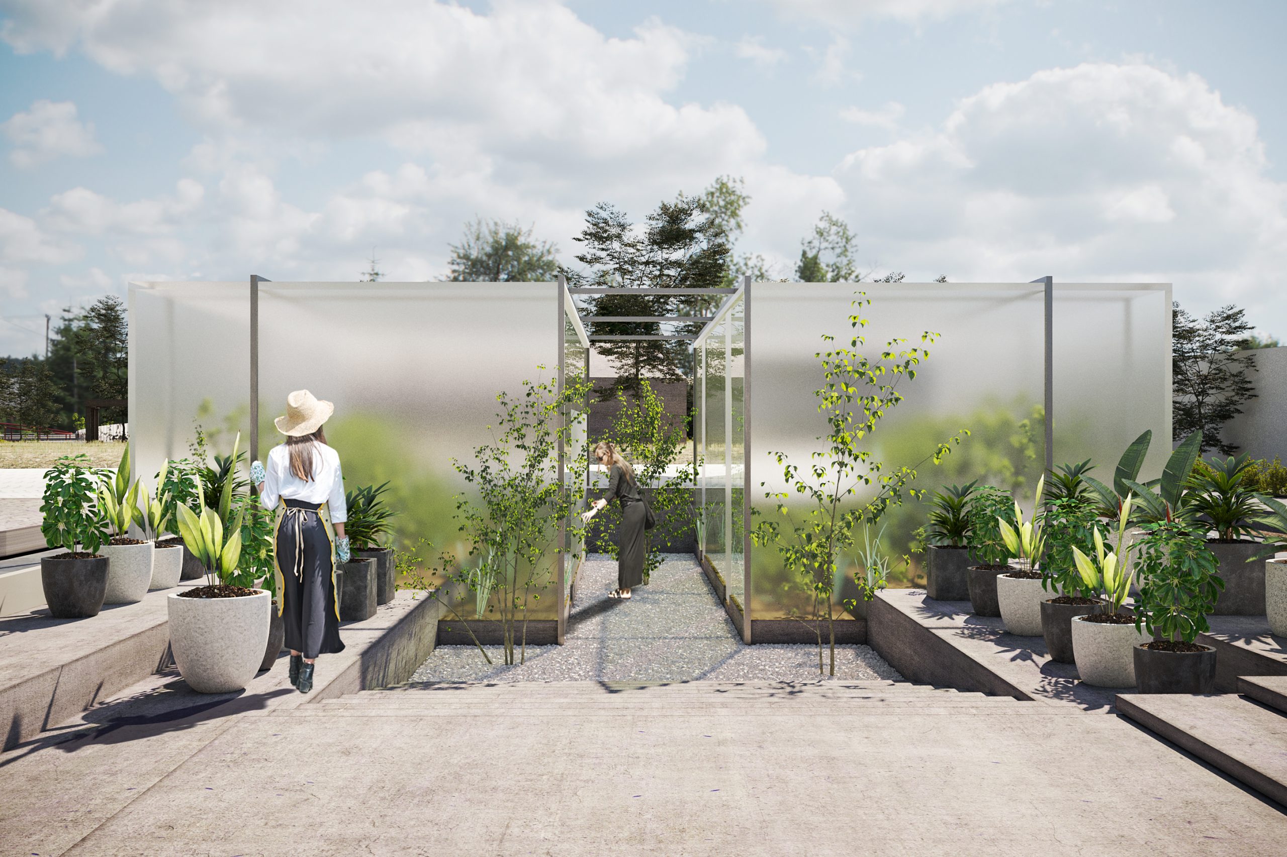 Given the increasing popularity of traditional medicine, medicinal plants, and herbal teas, there is a plan to construct a greenhouse next to the walking path. This greenhouse will feature a clear volume and inviting landscaping, and will be used to grow medicinal plants with therapeutic properties. Alongside this, there will be counseling and training regarding the properties of medicinal and indoor plants, as well as planting, maintaining, and selling them. The aim is to promote health education and create economic opportunities by preparing herbal teas.